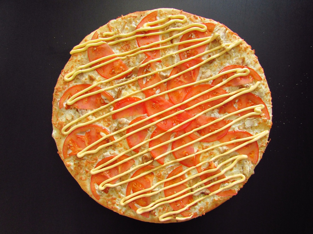 Пицца «Чикен-Чиз» — нежность и сырная гармония в каждой дольке. На мягком тесте — сочная курица, свежие помидоры и щедрый слой расплавленного сыра. Особую сливочность и насыщенный вкус придаёт сырный соус, который делает пиццу особенно аппетитной и сытной. Отличный выбор для любителей сыра и курицы.