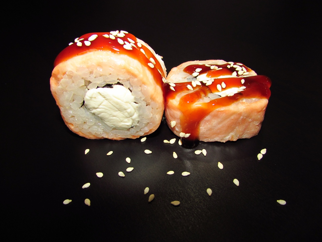 Ролл «Филадельфия Классическая Запечённая» — знакомая классика в новом исполнении. В основе — нори и нежный рис, дополненные сливочным сыром и деликатным лососем. Запекание делает ролл особенно ароматным и тёплым, а унаги-соус и кунжут придают сладковато-ореховый акцент. Отличный выбор для тех, кто любит классические роллы в горячем варианте.