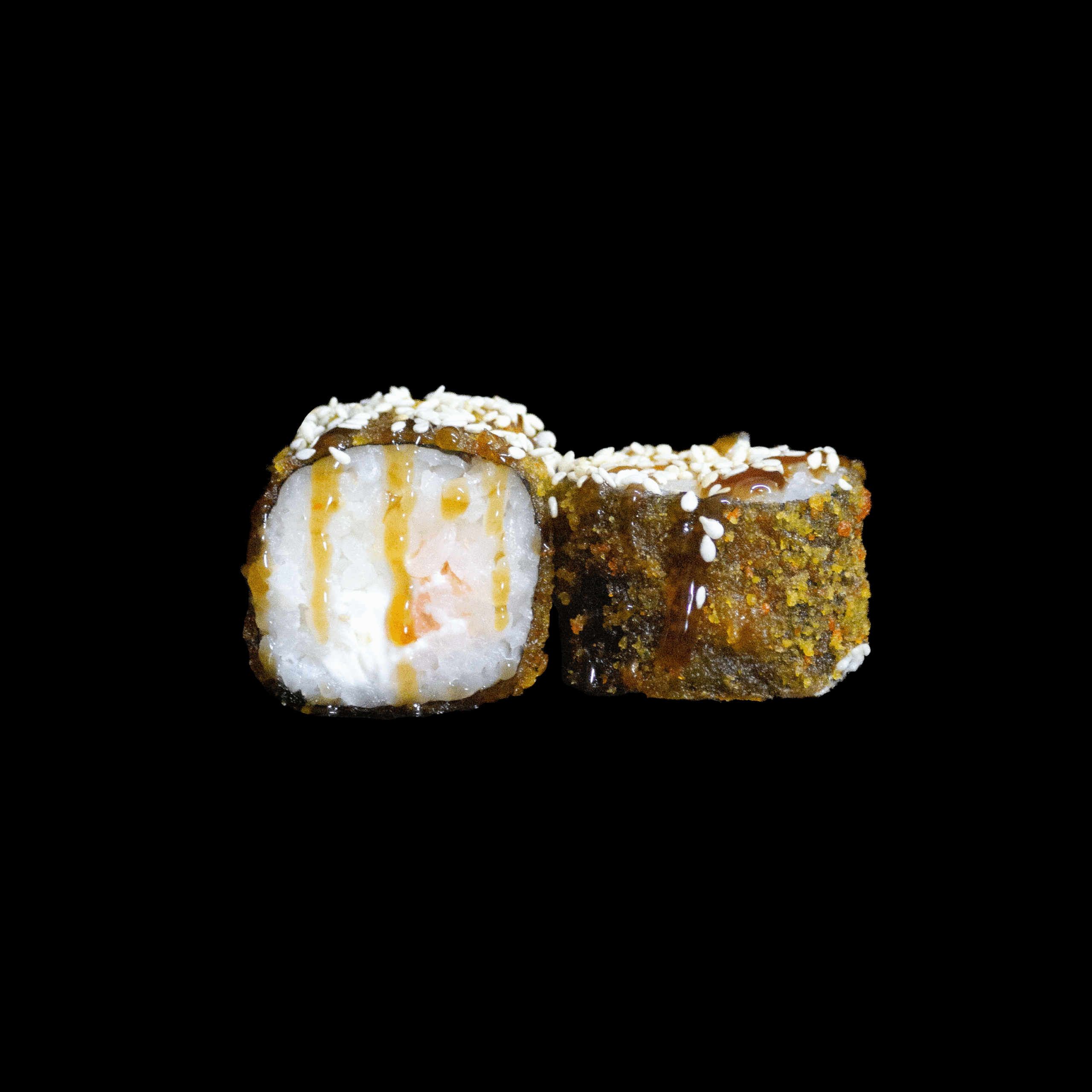 Ролл «Филадельфия Темпура» — классика в новом исполнении. На основе из нори и нежного риса — сливочный сыр и деликатный лосось. Темпурная обжарка придаёт роллу хрустящую корочку и делает вкус более насыщенным. Унаги-соус и кунжут завершают композицию, добавляя сладковатый акцент и ореховый аромат. Отличный выбор для любителей горячих роллов.