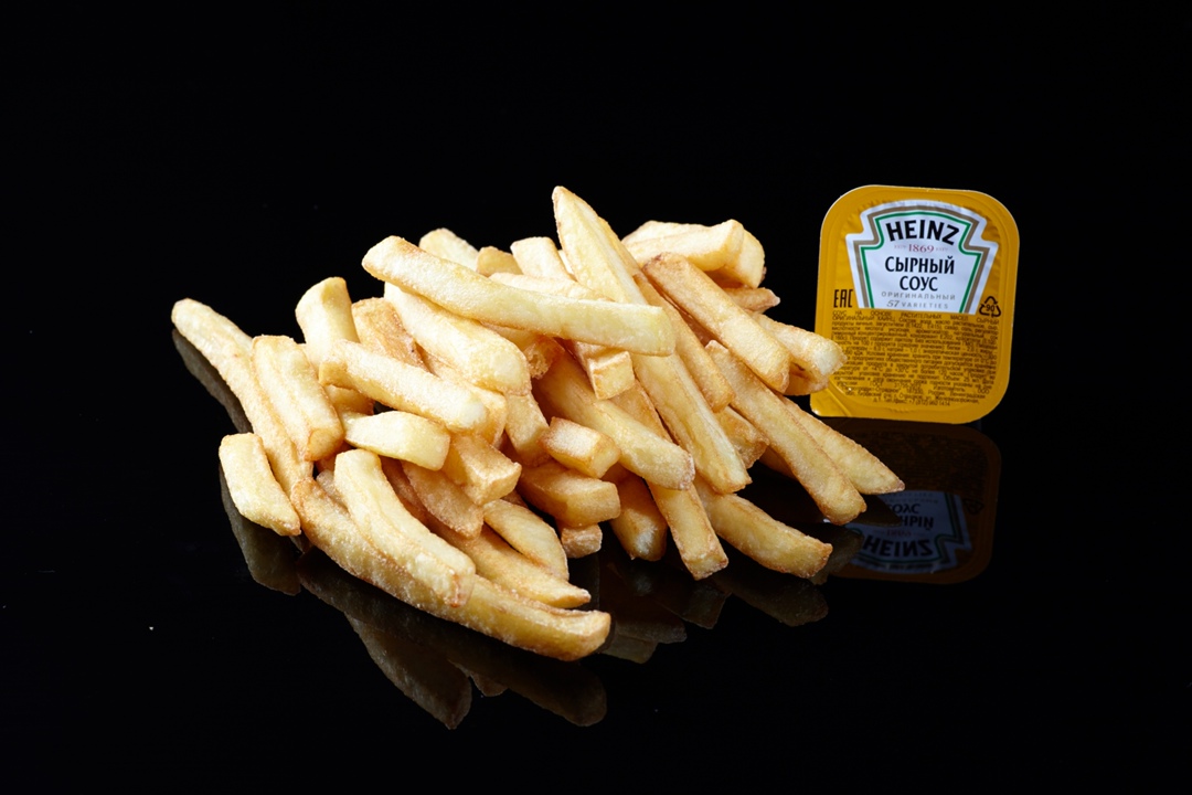Картофель фри (150 г) — 190 ₽Классическая хрустящая закуска. Золотистая картошка фри, обжаренная до аппетитной корочки и подающаяся с нежным сырным соусом. Отличный выбор как самостоятельное блюдо или дополнение к любым основным позициям меню.