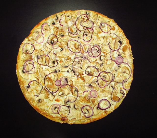 Пицца «Курица по-дижонски» — пикантное сочетание с французским шармом. На румяном тесте — нежная курица, шампиньоны и сладковатый красный лук. Всё это дополняет соус на основе майонеза и ароматной горчицы, придающий лёгкую остроту и насыщенный вкус. Сырный слой делает пиццу аппетитной и особенно сытной. Отличный выбор для тех, кто любит изысканность даже в простых вещах.