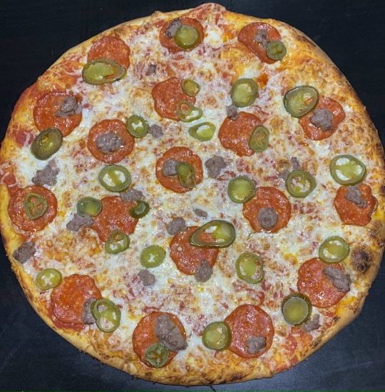 Пицца с халапеньо — пикантная и сытная классика. На румяном тесте — сочный говяжий фарш и колбаски пепперони, которые создают насыщенный мясной вкус. Остроту и характер добавляют колечки халапеньо, а кетчуп и расплавленный сыр объединяют ингредиенты в аппетитную и гармоничную композицию. Отличный выбор для тех, кто любит мясо и лёгкую остринку.