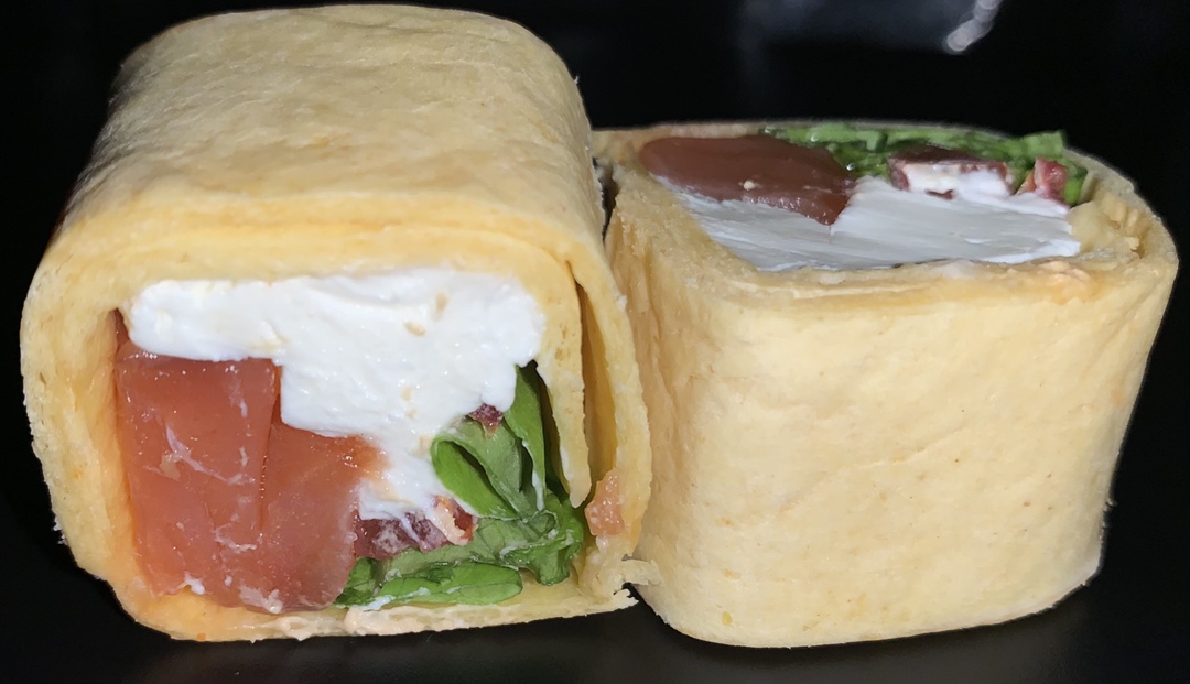 Тортилья с копчёным лососем — нежная и изысканная закуска. В мягкой тортилье — сливочный сыр, деликатный копчёный лосось, свежий лист салата и спелый помидор. Зелёный лук придаёт лёгкий аромат, а сама тортилья создаёт гармоничное сочетание свежести и сытности. Отличный выбор для любителей рыбных закусок.