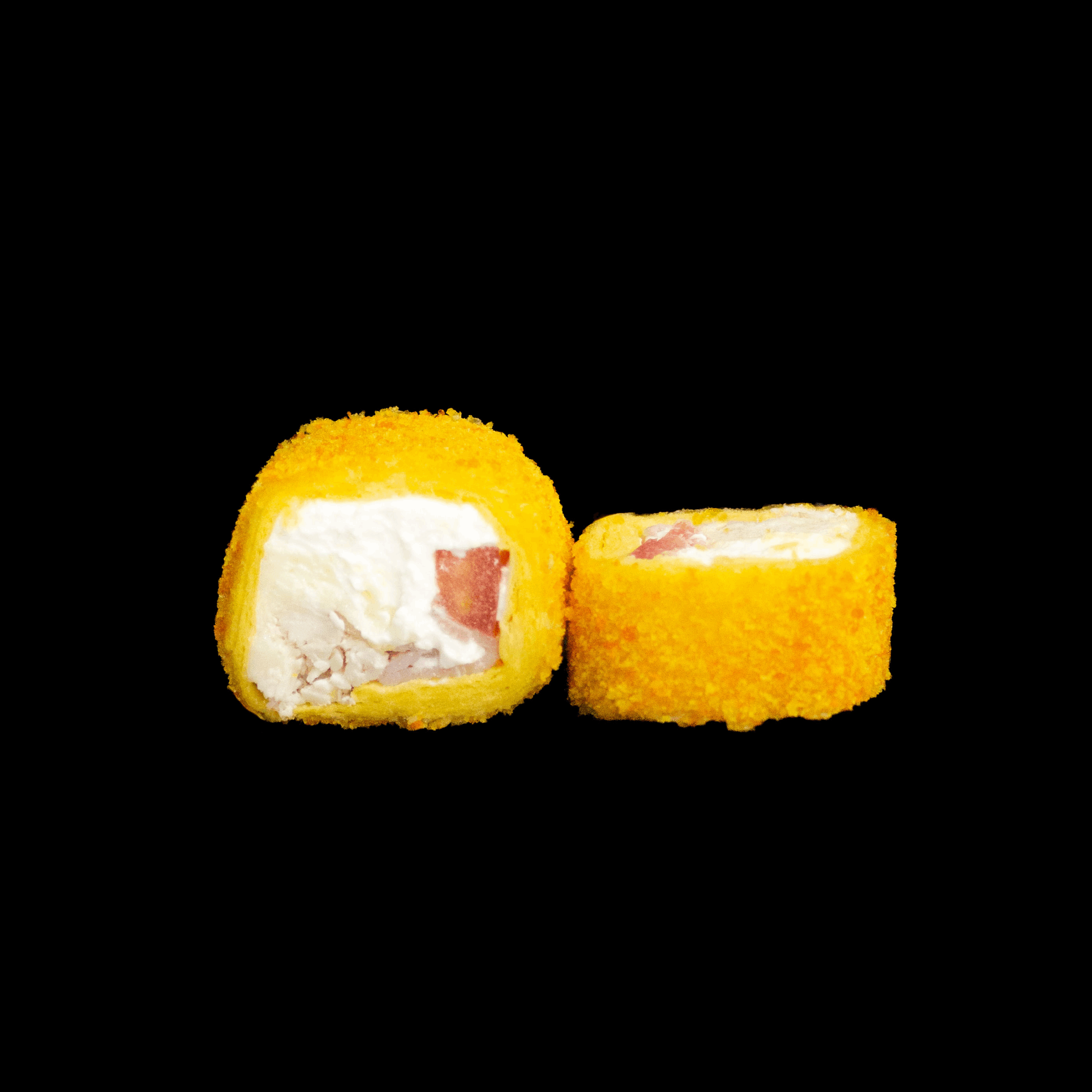 Внутри нежной тортильи — копчёная курица, ароматный бекон и сочный помидор. Сыры гауда и Cremetta придают сливочность и насыщенный вкус, а соус «Спайси» добавляет лёгкую пикантность. Обжарка в темпуре делает ролл аппетитно-хрустящим и особенно вкусным.